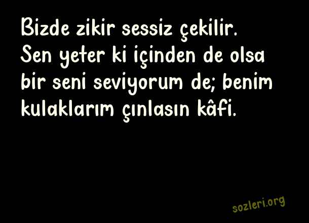 Bizde zikir sessiz çekilir. Sen yeter ki içinden de olsa bir seni seviyorum de; benim kulaklarım çınlasın kâfi. ( Sevgiliye Sevilene En Güzel Kısa Uzun Aşk )