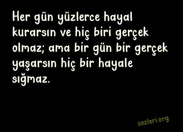 Her gün yüzlerce hayal kurarsın ve hiç biri gerçek olmaz; ama bir gün bir gerçek yaşarsın hiç bir hayale sığmaz. ( Sevgiliye Sevilene En Güzel Kısa Uzun Aşk )