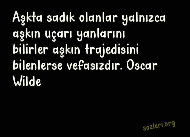 Aşkta sadık olanlar yalnızca aşkın uçarı yanlarını bilirler aşkın trajedisini bilenlerse vefasızdır. Oscar Wilde ( Vefasızlara Sözler )