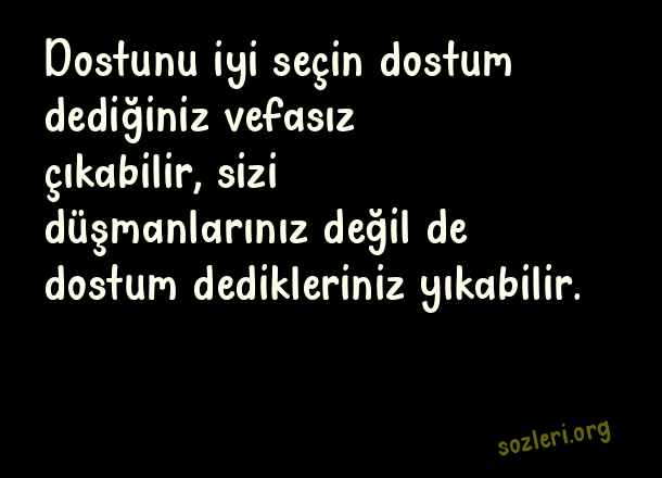 Dostunu iyi seçin dostum dediğiniz vefasız çıkabilir, sizi düşmanlarınız değil de dostum dedikleriniz yıkabilir. ( Vefasızlara Sözler )