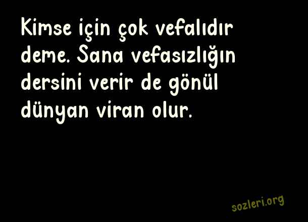 Kimse için çok vefalıdır deme. Sana vefasızlığın dersini verir de gönül dünyan viran olur. ( Vefasızlara Sözler )