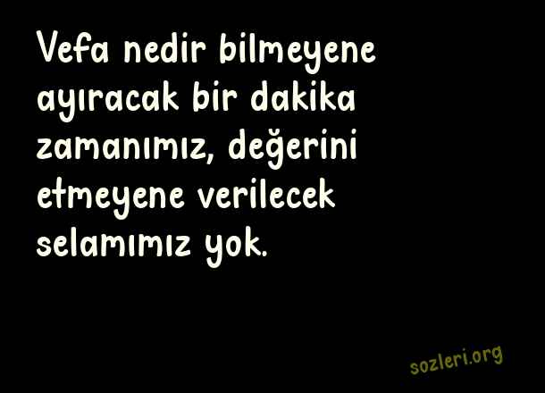 Vefa nedir bilmeyene ayıracak bir dakika zamanımız, değerini etmeyene verilecek selamımız yok. ( Vefasızlara Sözler )