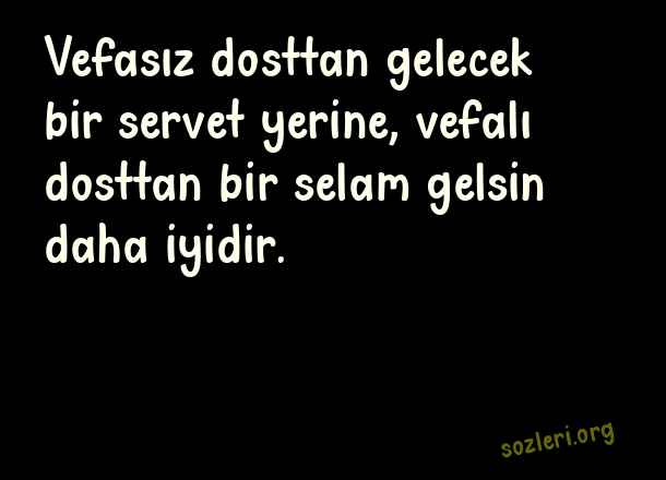 Vefasız dosttan gelecek bir servet yerine, vefalı dosttan bir selam gelsin daha iyidir. ( Vefasızlara Sözler )