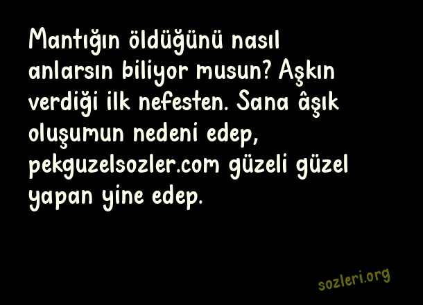 Mantığın öldüğünü nasıl anlarsın biliyor musun? Aşkın verdiği ilk nefesten. Sana âşık oluşumun nedeni edep, güzeli güzel yapan yine edep. ( Whatsapp Aşk Durumları )