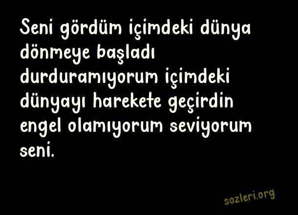 Seni gördüm içimdeki dünya dönmeye başladı durduramıyorum içimdeki dünyayı harekete geçirdin engel olamıyorum seviyorum seni. ( Whatsapp Aşk )