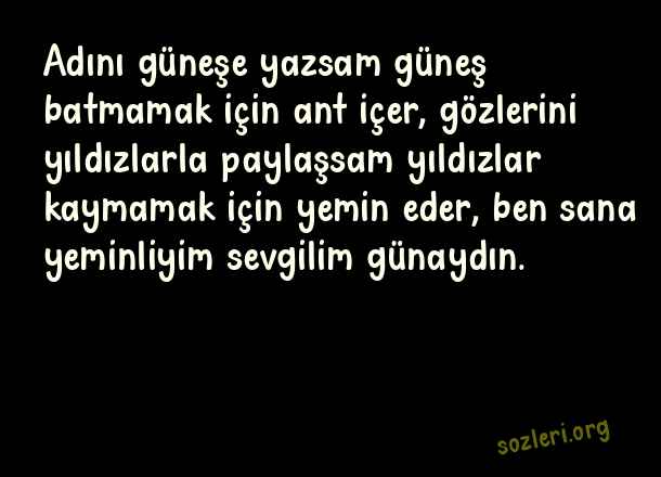Adını güneşe yazsam güneş batmamak için ant içer, gözlerini yıldızlarla paylaşsam yıldızlar kaymamak için yemin eder, ben sana yeminliyim sevgilim günaydın. ( Whatsapp Günaydın )