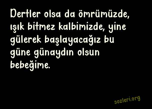 Dertler olsa da ömrümüzde, ışık bitmez kalbimizde, yine gülerek başlayacağız bu güne günaydın olsun bebeğime. ( Whatsapp Günaydın )