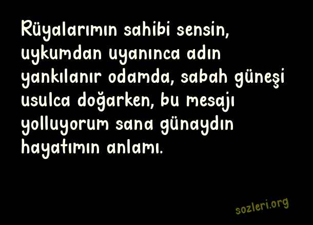 Rüyalarımın sahibi sensin, uykumdan uyanınca adın yankılanır odamda, sabah güneşi usulca doğarken, bu mesajı yolluyorum sana günaydın hayatımın anlamı. ( Whatsapp Günaydın )