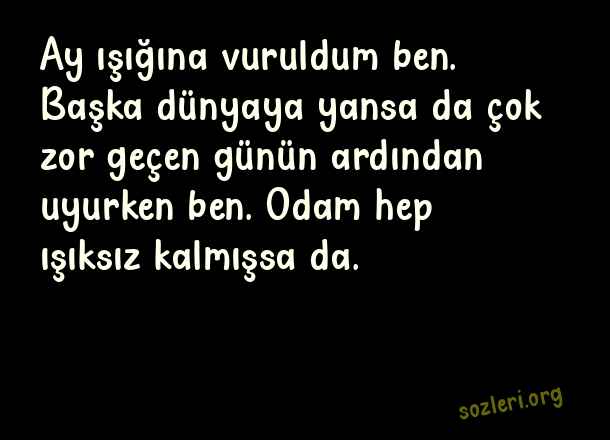 Ay ışığına vuruldum ben. Başka dünyaya yansa da çok zor geçen günün ardından uyurken ben. Odam hep ışıksız kalmışsa da. ( Yakamoz )