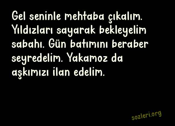 Gel seninle mehtaba çıkalım. Yıldızları sayarak bekleyelim sabahı. Gün batımını beraber seyredelim. Yakamoz da aşkımızı ilan edelim. ( Yakamoz )