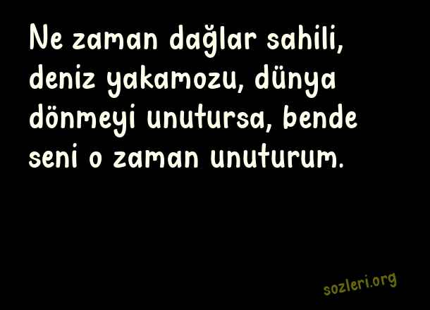 Ne zaman dağlar sahili, deniz yakamozu, dünya dönmeyi unutursa, bende seni o zaman unuturum. ( Yakamoz )