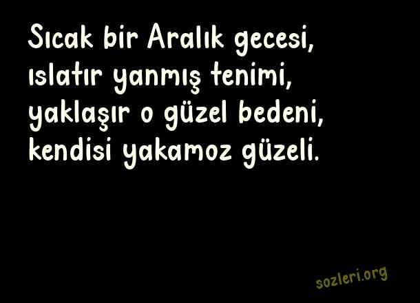 Sıcak bir Aralık gecesi, ıslatır yanmış tenimi, yaklaşır o güzel bedeni, kendisi yakamoz güzeli. ( Yakamoz )