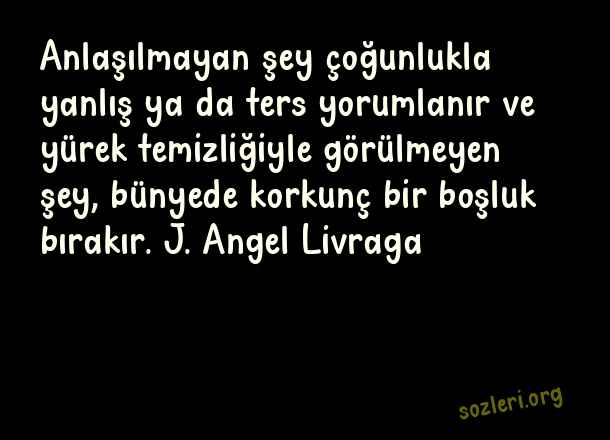 Anlaşılmayan şey çoğunlukla yanlış ya da ters yorumlanır ve yürek temizliğiyle görülmeyen şey, bünyede korkunç bir boşluk bırakır. J. Angel Livraga ( Yanlış Anlaşılmak )