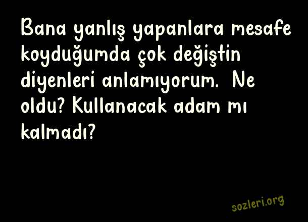 Bana yanlış yapanlara mesafe koyduğumda çok değiştin diyenleri anlamıyorum. Ne oldu? Kullanacak adam mı kalmadı? ( Yanlış Yapanlara Sözler )