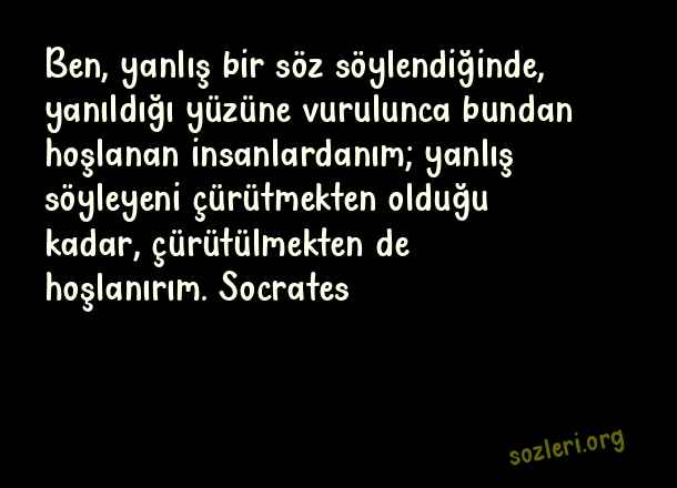 Ben, yanlış bir söz söylendiğinde, yanıldığı yüzüne vurulunca bundan hoşlanan insanlardanım; yanlış söyleyeni çürütmekten olduğu kadar, çürütülmekten de hoşlanırım. Socrates ( Yanlış Karar )