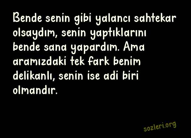 Bende senin gibi yalancı sahtekar olsaydım, senin yaptıklarını bende sana yapardım. Ama aramızdaki tek fark benim delikanlı, senin ise adi biri olmandır. ( Yanlış Yapanlara Sözler )