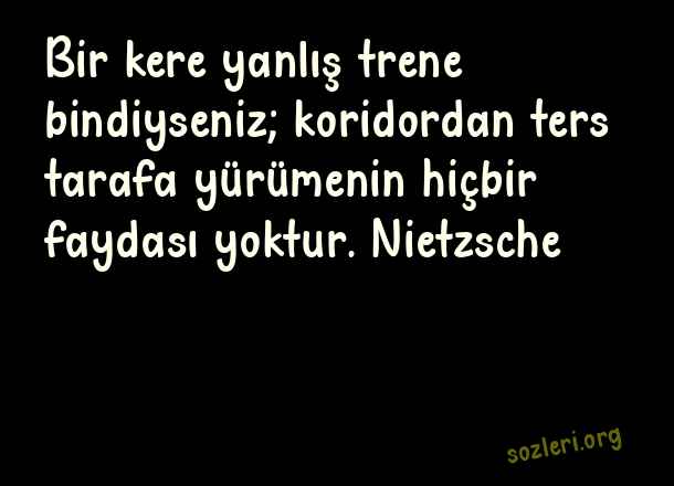 Bir kere yanlış trene bindiyseniz; koridordan ters tarafa yürümenin hiçbir faydası yoktur. Nietzsche ( Yanlış Yapanlara Sözler )