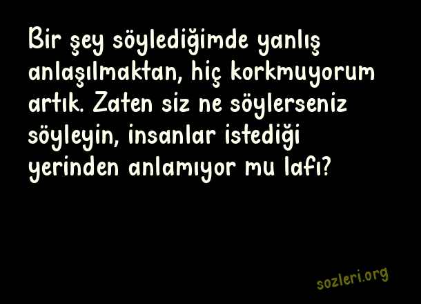 Bir şey söylediğimde yanlış anlaşılmaktan, hiç korkmuyorum artık. Zaten siz ne söylerseniz söyleyin, insanlar istediği yerinden anlamıyor mu lafı? ( Yanlış Anlaşılmak )