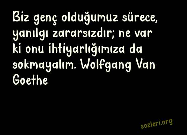 Biz genç olduğumuz sürece, yanılgı zararsızdır; ne var ki onu ihtiyarlığımıza da sokmayalım. Wolfgang Van Goethe ( Yanlış Karar )