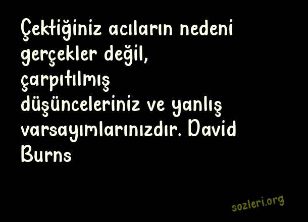 Çektiğiniz acıların nedeni gerçekler değil, çarpıtılmış düşünceleriniz ve yanlış varsayımlarınızdır. David Burns ( Yanlış )