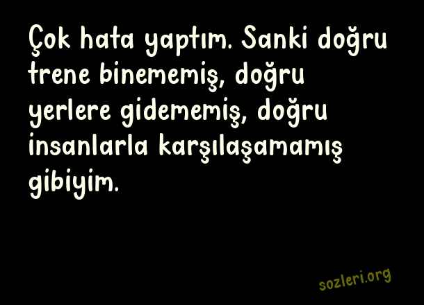 Çok hata yaptım. Sanki doğru trene binememiş, doğru yerlere gidememiş, doğru insanlarla karşılaşamamış gibiyim. ( Yanlış Yapanlara Sözler )
