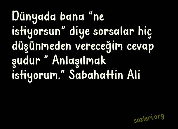 Dünyada bana “ne istiyorsun” diye sorsalar hiç düşünmeden vereceğim cevap şudur ” Anlaşılmak istiyorum.” Sabahattin Ali ( Yanlış Anlaşılmak )