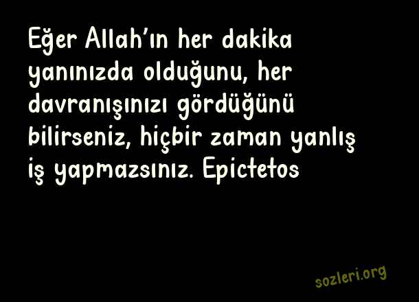 Eğer Allah’ın her dakika yanınızda olduğunu, her davranışınızı gördüğünü bilirseniz, hiçbir zaman yanlış iş yapmazsınız. Epictetos ( Yanlış Karar )