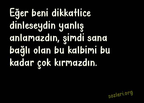 Eğer beni dikkatlice dinleseydin yanlış anlamazdın, şimdi sana bağlı olan bu kalbimi bu kadar çok kırmazdın. ( Yanlış Anlaşılmak )