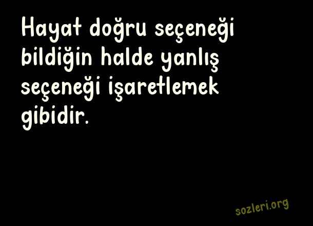 Hayat doğru seçeneği bildiğin halde yanlış seçeneği işaretlemek gibidir. ( Yanlış Yapanlara Sözler )