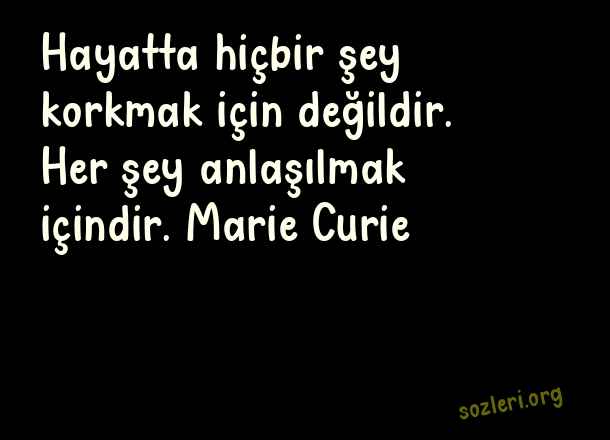Hayatta hiçbir şey korkmak için değildir. Her şey anlaşılmak içindir. Marie Curie ( Yanlış Anlaşılmak )