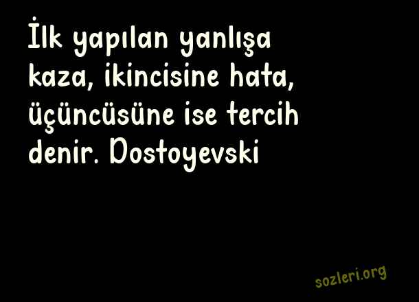 İlk yapılan yanlışa kaza, ikincisine hata, üçüncüsüne ise tercih denir. Dostoyevski ( Yanlış Karar )