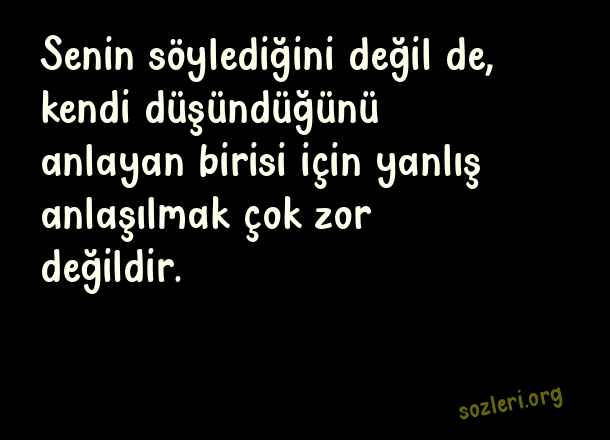 Senin söylediğini değil de, kendi düşündüğünü anlayan birisi için yanlış anlaşılmak çok zor değildir. ( Yanlış Anlaşılmak )