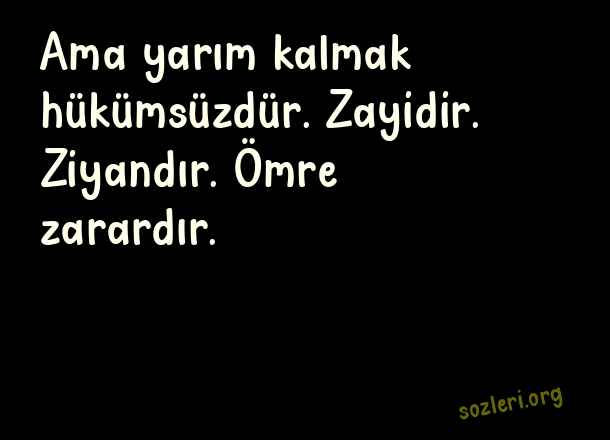 Ama yarım kalmak - Yarım Kalmak İle İlgili Sözler .. Ama yarım kalmak hükümsüzdür. Zayidir. Ziyandır. Ömre zarardır. ( Yarım Kalmak )