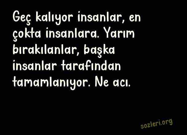 Geç kalıyor insanlar, en çokta insanlara. Yarım bırakılanlar, başka insanlar tarafından tamamlanıyor. Ne acı. ( Yarım Kalmak )