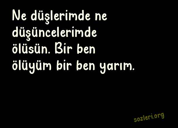Ne düşlerimde ne - Yarım Kalmak İle İlgili Sözler .. Ne düşlerimde ne düşüncelerimde ölüsün. Bir ben ölüyüm bir ben yarım. ( Yarım Kalmak )