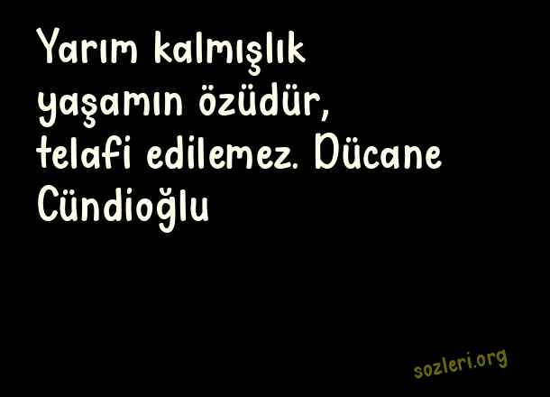 Yarım kalmışlık yaşamın özüdür, telafi edilemez. Dücane Cündioğlu ( Yarım Kalmak )