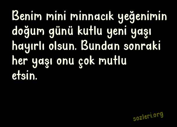 Benim mini minnacık yeğenimin doğum günü kutlu yeni yaşı hayırlı olsun. Bundan sonraki her yaşı onu çok mutlu etsin. ( Yeğene Doğum Günü )