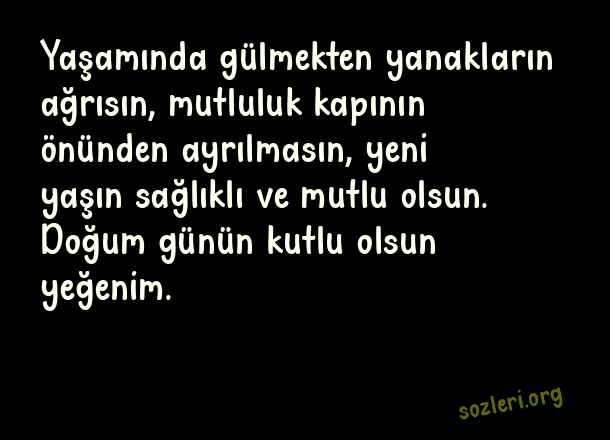 Yaşamında gülmekten yanakların ağrısın, mutluluk kapının önünden ayrılmasın, yeni yaşın sağlıklı ve mutlu olsun. Doğum günün kutlu olsun yeğenim. ( Yeğene Doğum Günü )