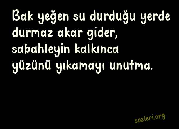 Bak yeğen su durduğu yerde durmaz akar gider, sabahleyin kalkınca yüzünü yıkamayı unutma. ( Yeğene Güzel Sözler )