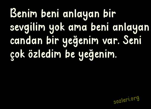 Benim beni anlayan bir sevgilim yok ama beni anlayan candan bir yeğenim var. Seni çok özledim be yeğenim. ( Yeğene Güzel Sözler )