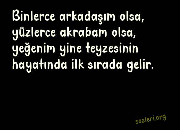 Binlerce arkadaşım olsa, yüzlerce akrabam olsa, yeğenim yine teyzesinin hayatında ilk sırada gelir. ( Yeğene Güzel Sözler )