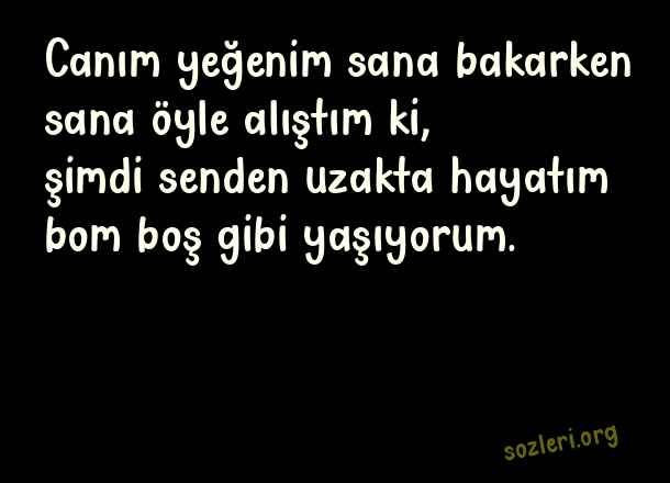 Canım yeğenim sana bakarken sana öyle alıştım ki, şimdi senden uzakta hayatım bom boş gibi yaşıyorum. ( Yeğene Güzel Sözler )