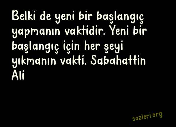 Belki de yeni bir başlangıç yapmanın vaktidir. Yeni bir başlangıç için her şeyi yıkmanın vakti. Sabahattin Ali ( Yeniden Başlamak )