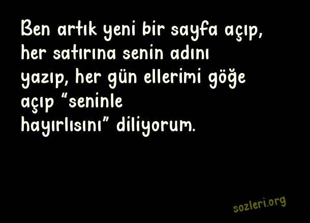 Ben artık yeni bir sayfa açıp, her satırına senin adını yazıp, her gün ellerimi göğe açıp “seninle hayırlısını” diliyorum. ( Yeniden Başlamak )