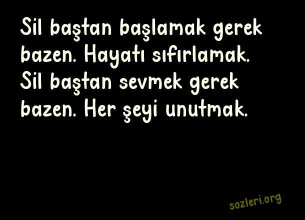 Sil baştan başlamak gerek bazen. Hayatı sıfırlamak. Sil baştan sevmek gerek bazen. Her şeyi unutmak. ( Yeniden Başlamak )