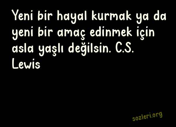 Yeni bir hayal kurmak ya da yeni bir amaç edinmek için asla yaşlı değilsin. C.S. Lewis ( Yeniden Başlamak )