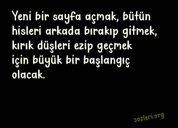 Yeni bir sayfa açmak, bütün hisleri arkada bırakıp gitmek, kırık düşleri ezip geçmek için büyük bir başlangıç olacak. ( Yeniden Başlamak )