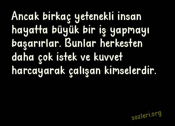 Ancak birkaç yetenekli insan hayatta büyük bir iş yapmayı başarırlar. Bunlar herkesten daha çok istek ve kuvvet harcayarak çalışan kimselerdir. ( Yetenek )