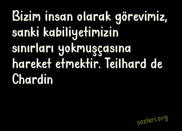 Bizim insan olarak görevimiz, sanki kabiliyetimizin sınırları yokmuşçasına hareket etmektir. Teilhard de Chardin ( Yetenek )