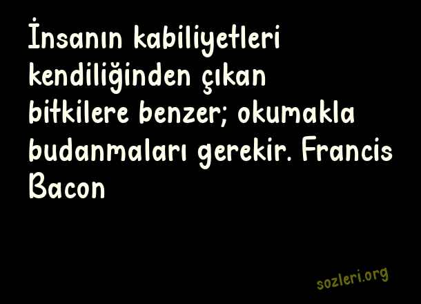 İnsanın kabiliyetleri kendiliğinden çıkan bitkilere benzer; okumakla budanmaları gerekir. Francis Bacon ( Yetenek )